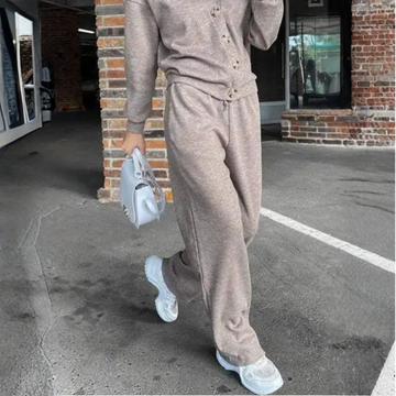 Casual Straight Leg Faux Leather Pants - Warm Winter Fleece Loose Trousers with Pockets
